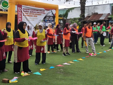 GAME TEAM BUILDING: BALL TRANSPORT How to Play: Within 7 minutes, each team member take turns using a paper fan to carry a balloon from the starting line to the finish line as many times as possible. Note: If the balloon drops during the process, the player must return to the start and begin again. Meaning: This game helps strengthen team spirit, bond members together, and creates a lively atmosphere for fun and entertainment